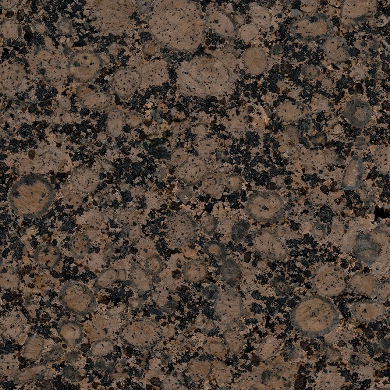 Baltic Brown granite is from Finland. It’s a mix of browns and blacks with hints of gray and tan. Its polished finish and nuanced variations make it a top choice for both indoor and outdoor areas in residential and commercial settings, covering countertops, walls, and flooring. Additionally, is suitable for exterior projects in non-freezing climates.