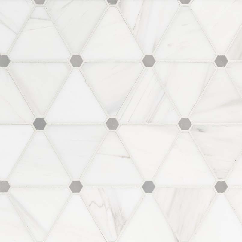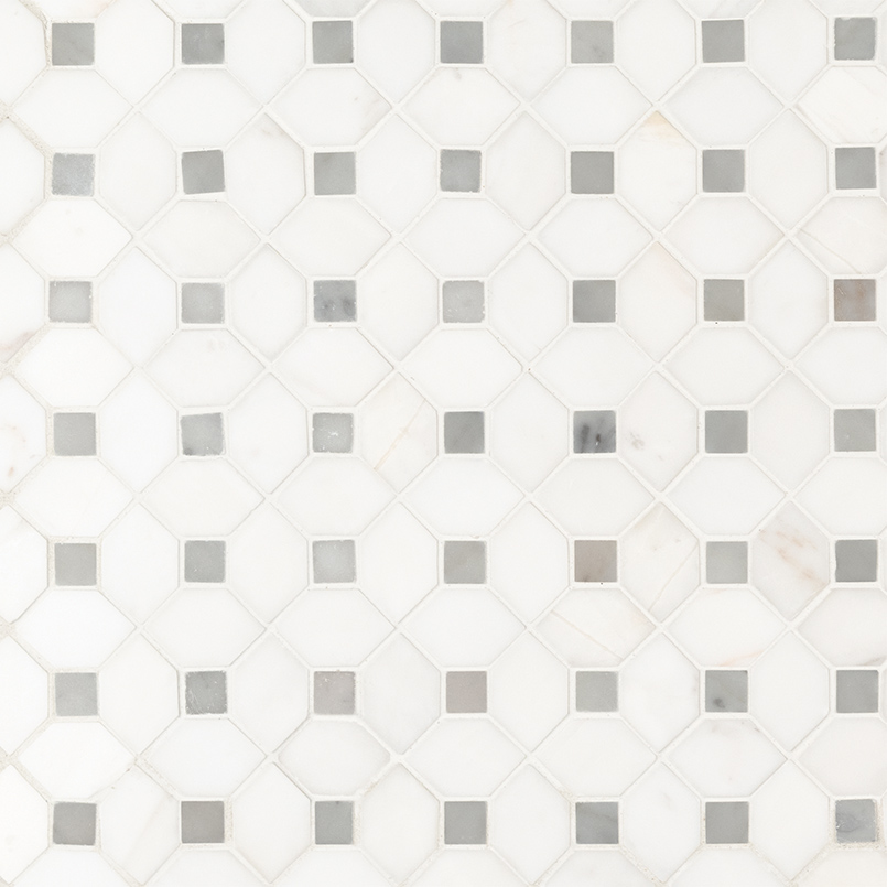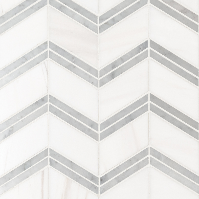 Bianco Dolomite, a medium variation marble imported from Turkey, is available as floor tiles, decorative mosaics, and wall tiles. This low contrast blend of arctic white and pale gray is perfect for marble floors, decorative mosaics, and wall tiles in both home and business environments. The elegant pattern of Bianco Dolomite stands out as a refined choice for any interior installation.