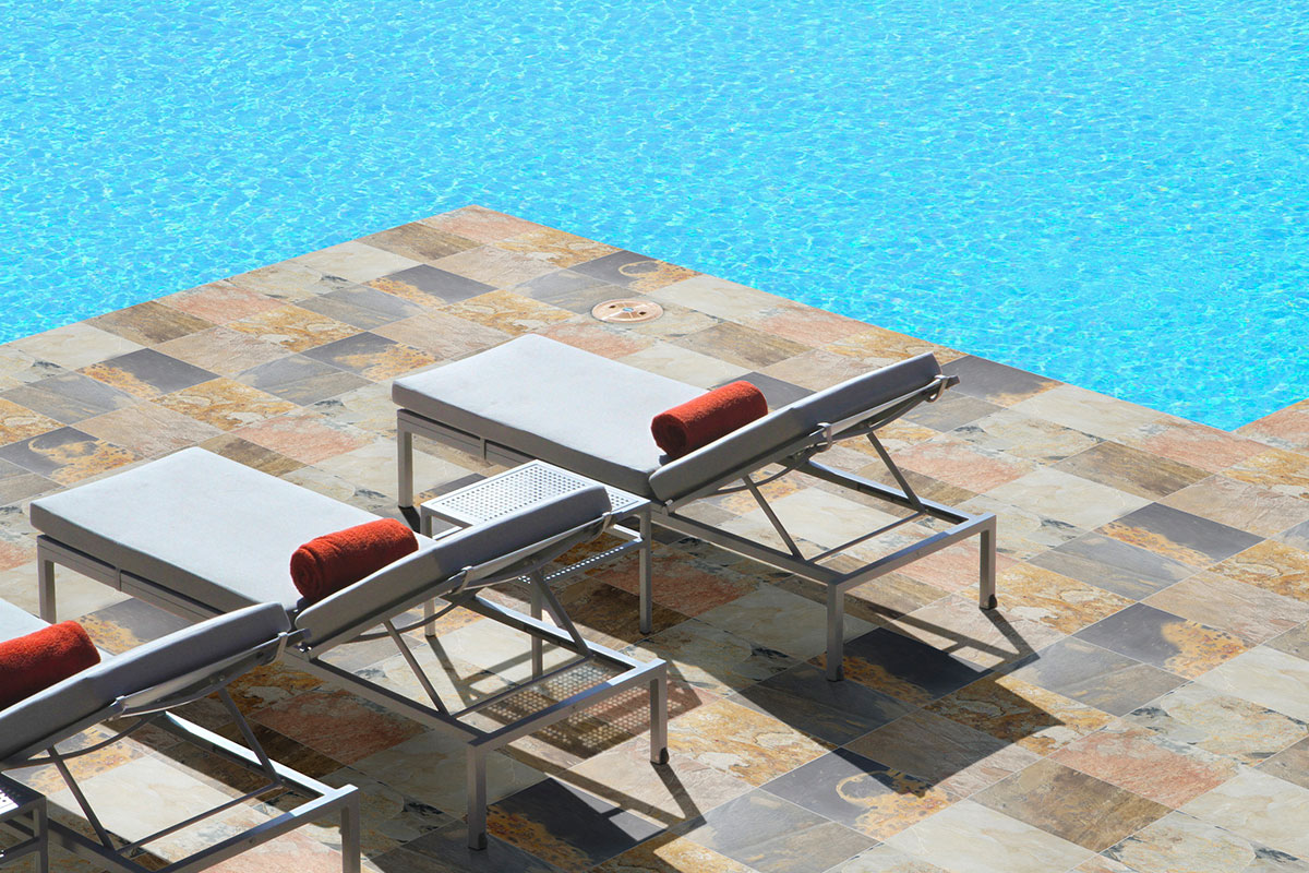 Autumn Slate tiles from India are rich multicolored tiles available in over 20 compositions and sizes for interior and exterior design projects. These slate tiles are recommended in areas without freezing temperatures for outdoor use, and all interior use including walls, showers, flooring, and other design features.