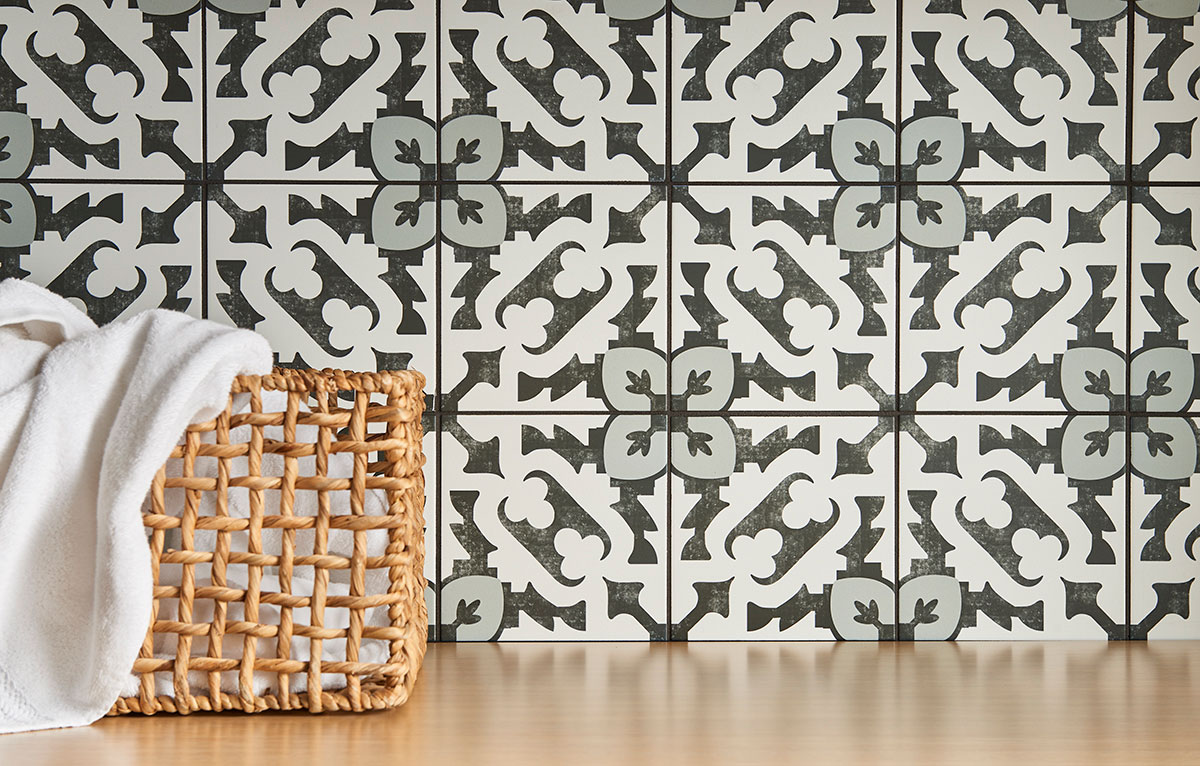 From our Kenzzi Porcelain Tile Collection, Brina Encaustic Tile features a beautiful black, white and gray pattern. Each design is handcrafted to recreate the intricate detail of individually, hand painted tiles, as a result, they are not fashioned to align seamlessly. Offered in matte-finished 8×8 tiles, they are perfect for a wide range of interior design projects including countertops, backsplashes, showers, and floors, Easy to clean, durable, and requiring no maintenance, they are perfect for active homes with busy kitchens, baths, entries, mudrooms, and living spaces.