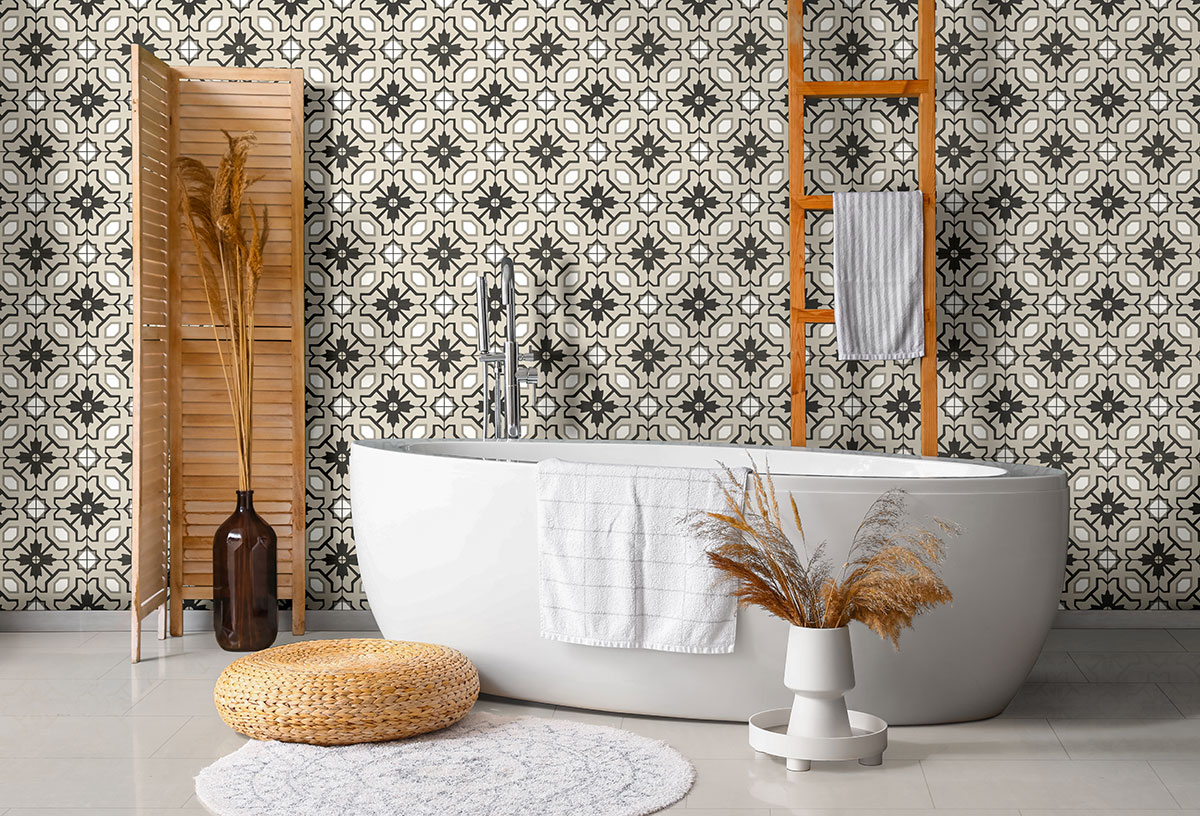 Tahari Encaustic Tile from the Kenzzi Collection features beautiful, neutral shades of taupe, black and white with a stunning geometric and floral pattern bringing interest to a space. This attractive matte-finished 8”x8” tile is durable, easy to clean, and low-maintenance, making it perfect for use on backsplashes, floors, showers, countertops, and more in residential and commercial spaces. Each design is handcrafted to recreate the involved detail of individually hand-painted tiles. Make each room a statement with Tahari Tile.