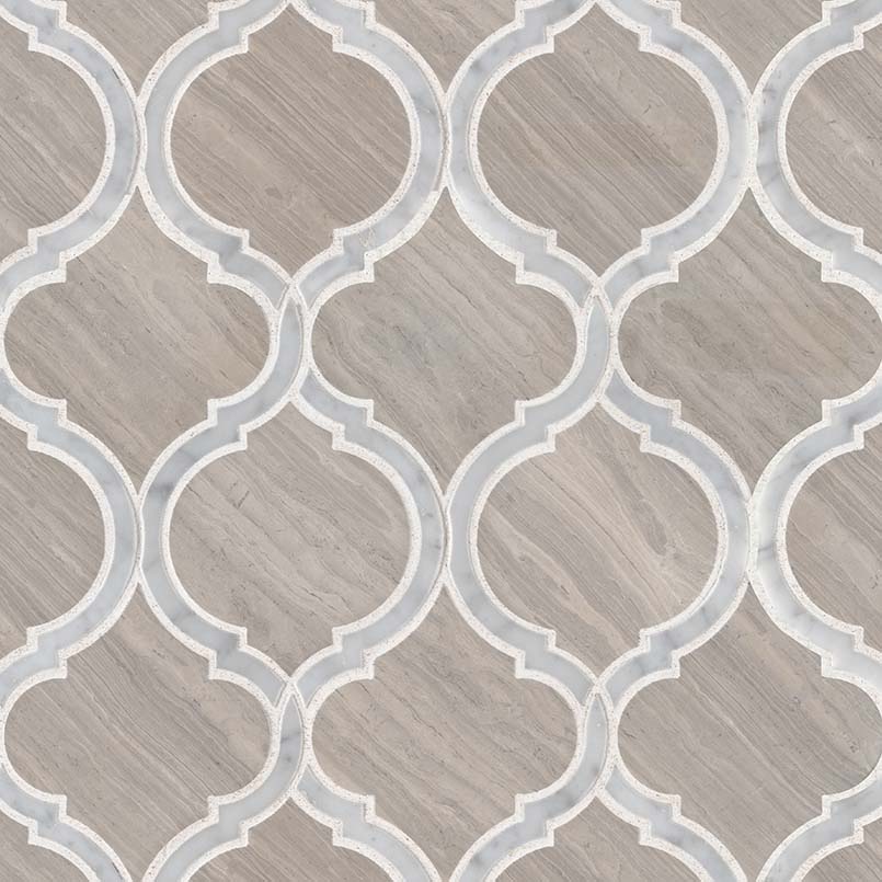 White Quarry Savona Arabesque Tile is a beige marble with gray accents for an elegant Moroccan tile backsplash. The natural stone comes with a polished finish and works well with any design style. They will create a chic arabesque tile backsplash, flooring, or wall feature. Match it with other coordinating natural stone slabs or glass arabesque tile from MSI.