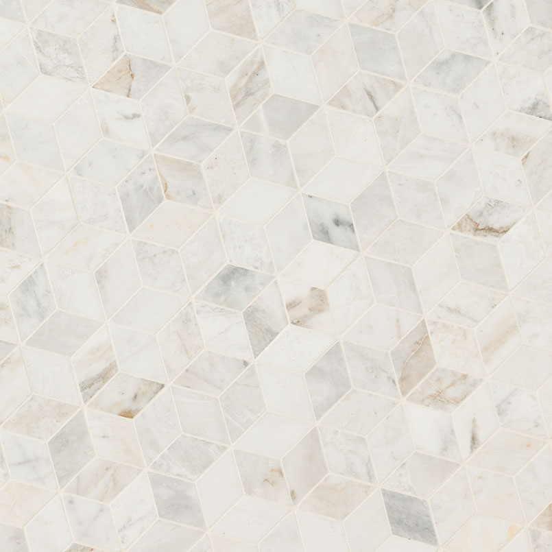 Add texture and dimension to a space with Arabescato Venato Cube Marble Tile. Soft, dreamy colors come together to add a touch of simple elegance, while the unique geometric pattern offers a modern twist. Not just luxurious, marble is durable, resilient, and easy to maintain. Use these mosaic tiles to create a dazzling kitchen backsplash, countertop, accent wall, fireplace surround, or even flooring tile in residential applications.