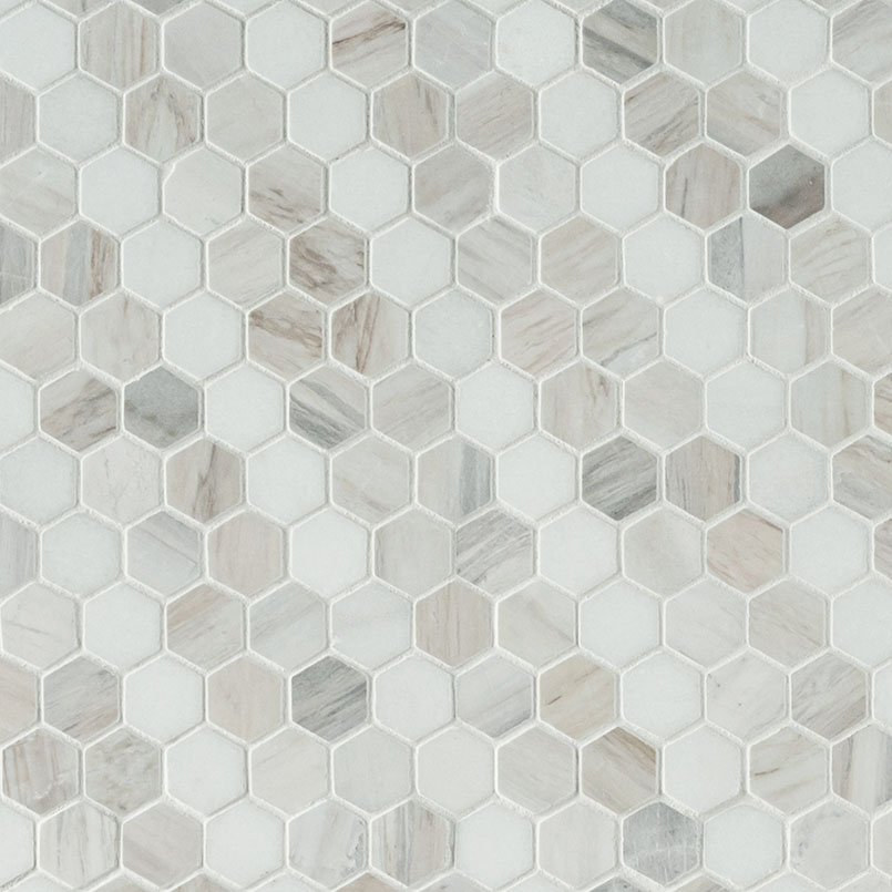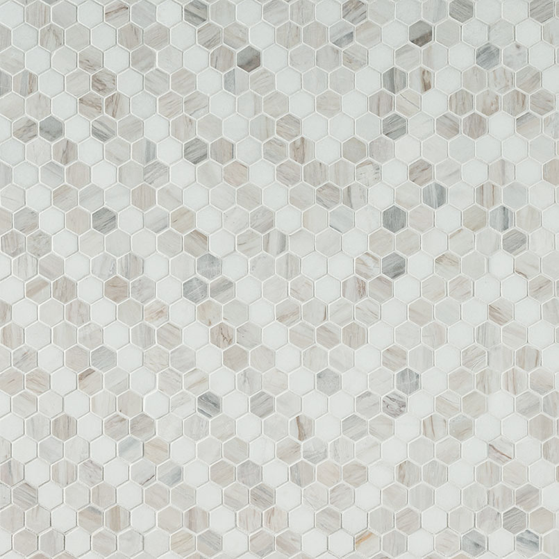 Make a subtly striking impression with the Angora Sazi Polished, boasting an array of 1” hexagon cream and tan hued tiles. The distinctive zig-zag pattern of this marble backsplash tile captures attention, adding an air of sophistication and coziness to your space. With a mesh backing, this tile option effortlessly suits various applications in residential and commercial settings, seamlessly blending with diverse design styles. Whether in a small or large bathroom, kitchen, or any other area craving style and elegance, this mosaic tile brings forth a touch of refinement and grace.