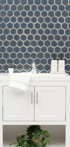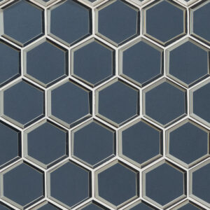 Add drama and interest to your space with Vague Blue 3” Hexagon Mosaic Tile. A striking take on the classic hexagon shape, this glass mosaic features a deep grey blue tile with beveled edges for enhanced impact. It’s the perfect choice for your kitchen backsplash, bar area, shower surround, bathroom vanity wall and more. Not only stylish, but also durable and low maintenance, Vague Blue Beveled 3” Hexagon Mosaic Tile updates your home or commercial project with contemporary colors and the brilliance of glass tile. Tiles are strategically arranged on mesh backed sheets for simplified installation and professional look.