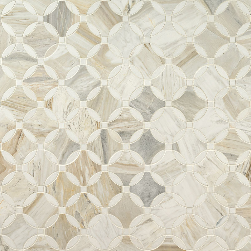 Athena Gold Lola Tile infuses indoor spaces with both warmth and beauty. With its warm white color palette infused with creamy golden shades, this mosaic tile effortlessly complements a variety of architectural styles or color schemes. Its distinct geometric patterns not only add visual intrigue but also bring a modern flair. Crafted from natural marble, this tile boasts a sleek polished finish that exudes elegance. The addition of a mesh backing simplifies installation while ensuring a polished and professional outcome. Whether it’s for captivating kitchen backsplashes, bathroom walls, fireplace surrounds, or shower walls, the Athena Gold Lola Tile transforms residential rooms into inviting havens.