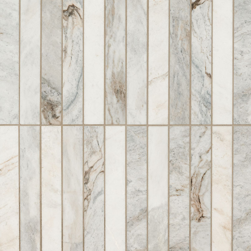 Crafted from genuine marble, Arabescato Venato Tile showcases a welcoming white backdrop infused with a graceful mix of delicate hues ranging from creamy whites to smoky grays. The timeless 2” x 12” subway tiles effortlessly complement any design aesthetic, while the honed finish accentuates the innate splendor of the stone. Utilize these mosaic tiles to fashion a stunning kitchen backsplash, elegant countertop, captivating accent wall, enchanting fireplace surround, or even as floor tiles in residential spaces.