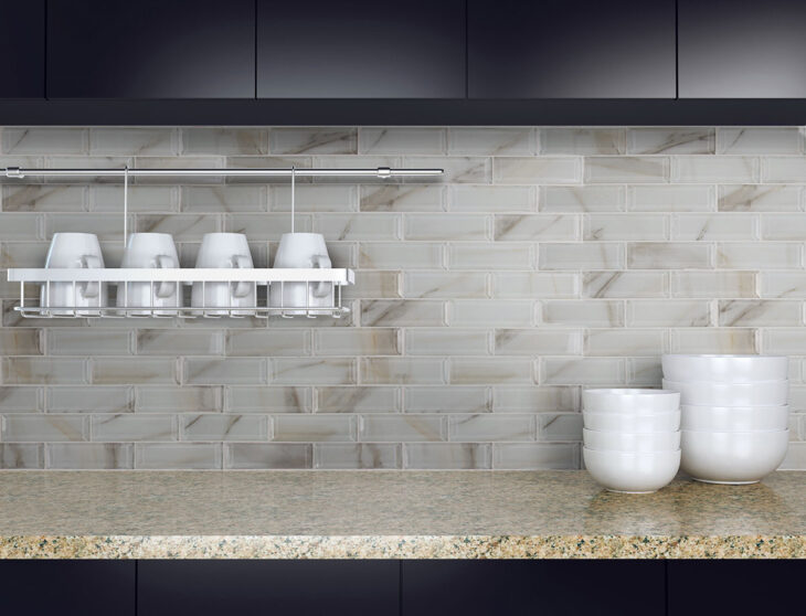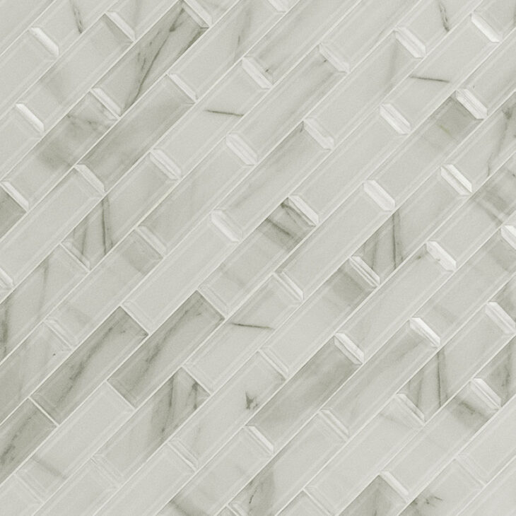 Ivory Amber Beveled Subway Tile offers the look of expensive Italian marble in an affordable, on-trend, easy to care for glass product. This beveled tile draws attention and interest and depth without overwhelming other design elements. It’s neutral hues and classic look allow it to work with a wide variety of color schemes, whether used on backsplashes, vanity walls, shower surrounds, or other vertical applications. Residential to light commercial, Ivory Amber Beveled Glass Subway Tile is modern elegance done right. This tile is Greenguard Indoor Air Quality Certified® and comes mounted on mesh-backed sheets for a simplified installation and professional finish.